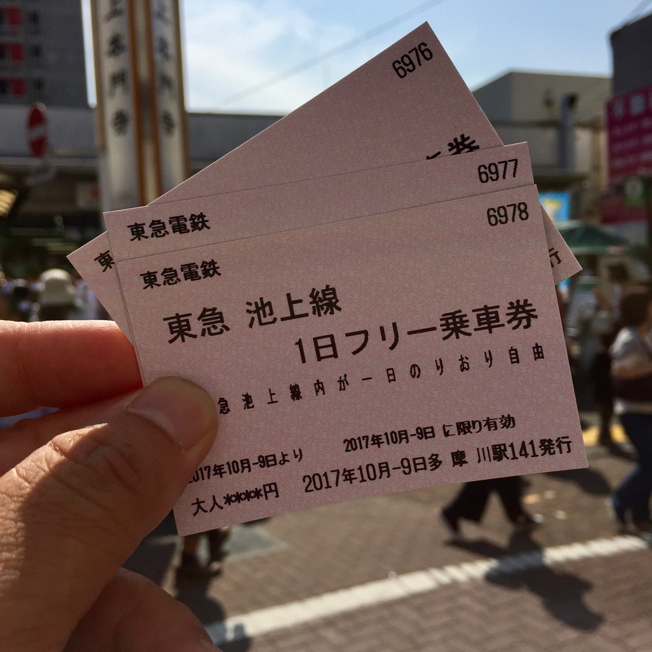 ティッシュでも配る様に、配布しています、池上線フリー切符。本日のみ。