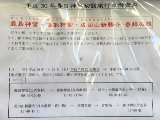 山王・熊野神社 初詣バスツアーのご案内 平成30年1月14日