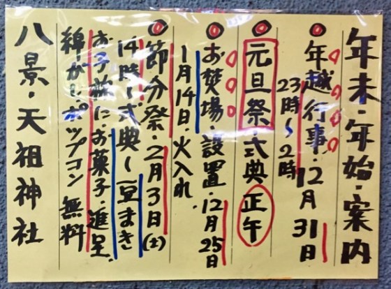 八景・天祖神社 年末・年始・案内 初詣 平成29年〜平成30年