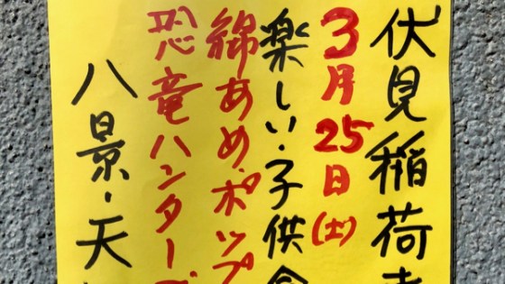 神社下の掲示板に伏見稲荷まつりのお知らせが出ていました。八景・天祖神社 伏見稲荷