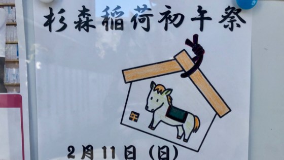 町会掲示板に、初午祭のお知らせが出ています。平成30年2月11日 西大井二丁目町会会館にて
