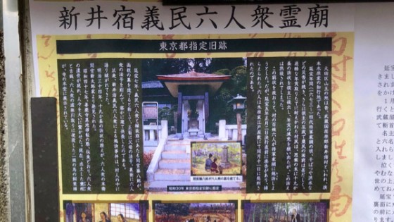 町会の掲示板に、新井宿・義民六人衆事件について書いてありました。宝永年間のころ、干ばつや洪水などの災害が続き、さらに領主の圧政により