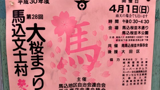 町内の掲示板に「馬込文士村 大桜まつり」のお知らせが出ていました。