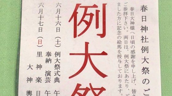 春日神社例大祭のお知らせ 6月16日、17日