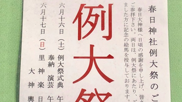 大森・新井宿の春日神社例大祭のおしらせが神社の掲示板にでていました。