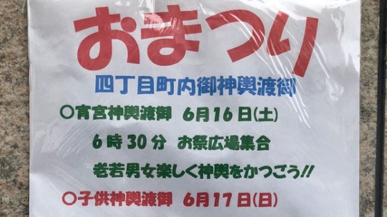 四丁目町会 御神輿のお知らせ 春日神社例大祭