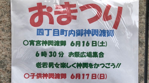 大森・新井宿の春日神社例大祭の四丁目町会御神輿のお知らせです。