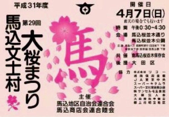 町内の掲示板に「馬込文士村 大桜まつり」のお知らせが出ていました。