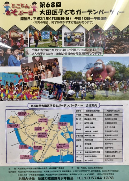 今年で68回目の大田区子供ガーデンパーティーのお知らせが町会の掲示板に出ていました。