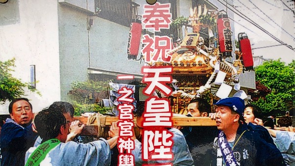 町会の掲示板に「太田神社 奉祝天皇陛下御即位 一之宮宮神輿渡御・提灯行列」のお知らせが出ていました。