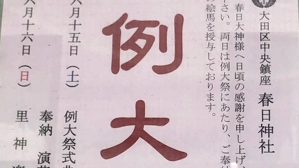 今年の例大祭は、令和元年6月15日(土)、16日(日)です。