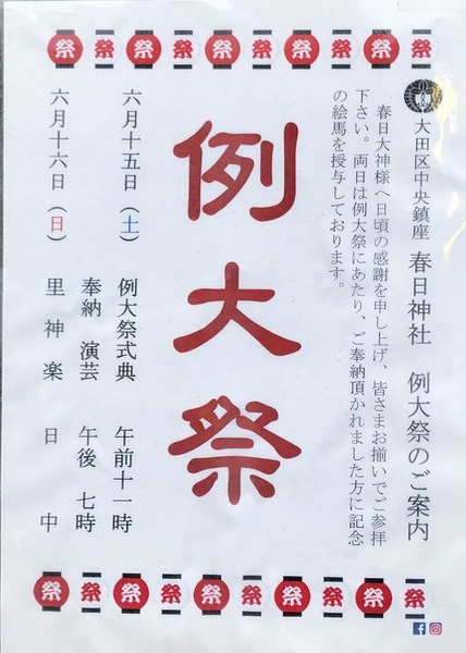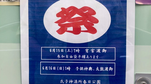 今年の例大祭は、令和元年6月15日(土)、16日(日)です。