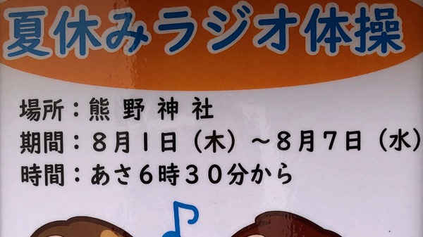 山王3丁目町会の掲示板に「夏休みラジオ体操」のお知らせが出ていました。