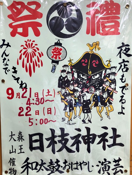 来週の例大祭へ向け準備が進んでいます。台風15号の倒木も無事撤去されています。今年の例大祭は 9月21日(土)、22日(日)です。