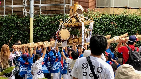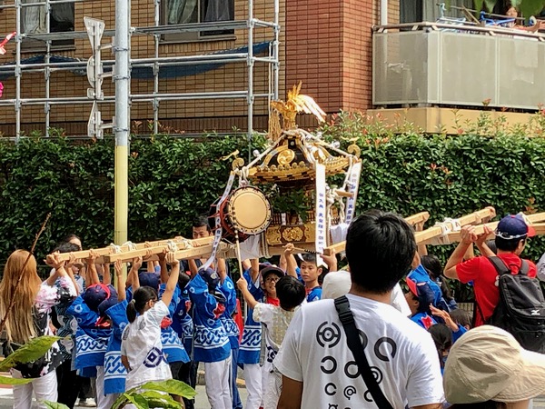 鈴ヶ森町会の子供御神輿、山車に遭遇しました。天気が良くお祭り日和です。令和元年