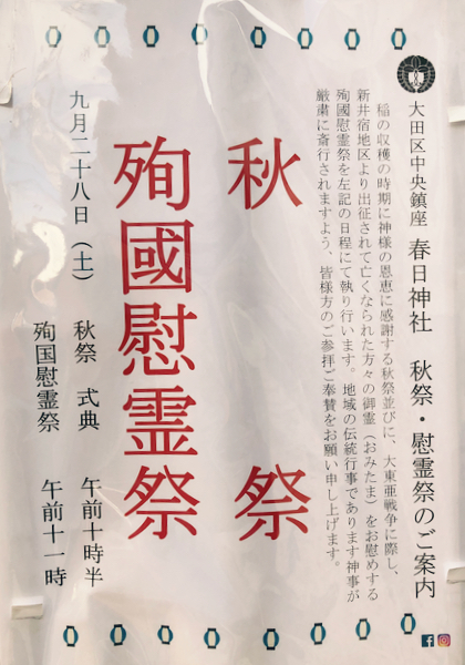 今年の秋祭と殉国慰霊祭のお知らせが出ていました。