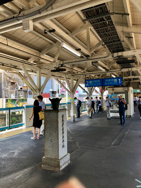日本考古学発祥の地である大森。プラットフォームには記念碑があります。プラットフォームの屋根フレームもまだ一部木造。