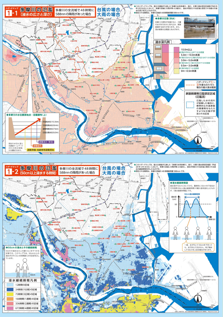 ハザードマップ1-1 多摩川の氾濫(浸水の深さ)