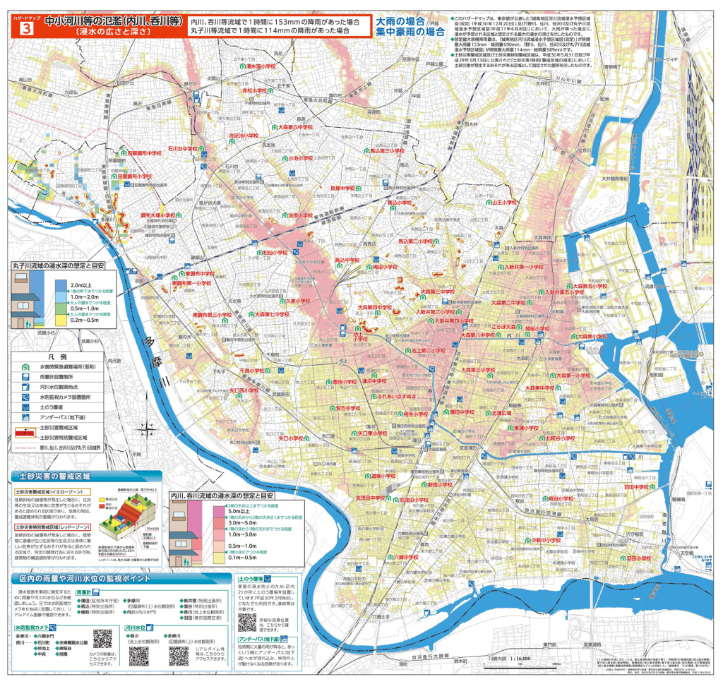 大田区ハザードマップ(風水害編)の掲載内容