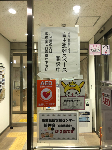 大田区台風19号接近に伴う、自主避難スペースのサイトより