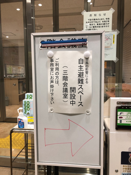 新井宿特別出張所は、台風19号接近に伴う自主避難スペース開設中です。