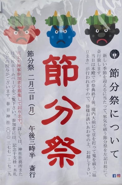 【大田区・春日神社】今年の節分祭のお知らせが出ていました。 令和2元年1月12日 hagiwaratakeshi2020年1月12日2020年1月12日イベント、節分、大田区、大森、新井宿、春日神社 投稿ナビゲーション 前次へ 令和2年の新井宿・春日神社の節分祭は2月3日(月)15時半からです。 このブログは品川区、大田区を中心に活動する、耐震リノベーションを得意とする建築設計事務所Tiida Associatesが運営しています 。 大井・大森・蒲田ランキングいいね 読み込み中…