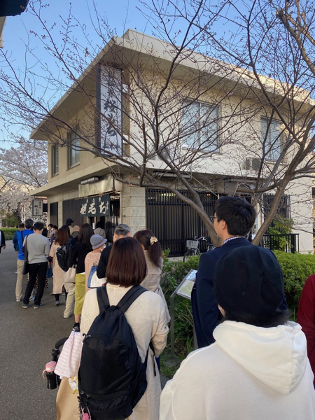 長命寺の桜餅は、あいかわらずの行列です。花見の時期は持ち帰りのみです。