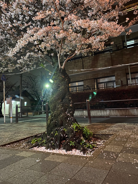 昼間の強い風と雪のおかげで、色々な物が桜の花びらをまとっています。