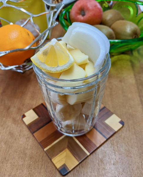 バナナ、りんご、レモン、アクセントに新タマネギです。