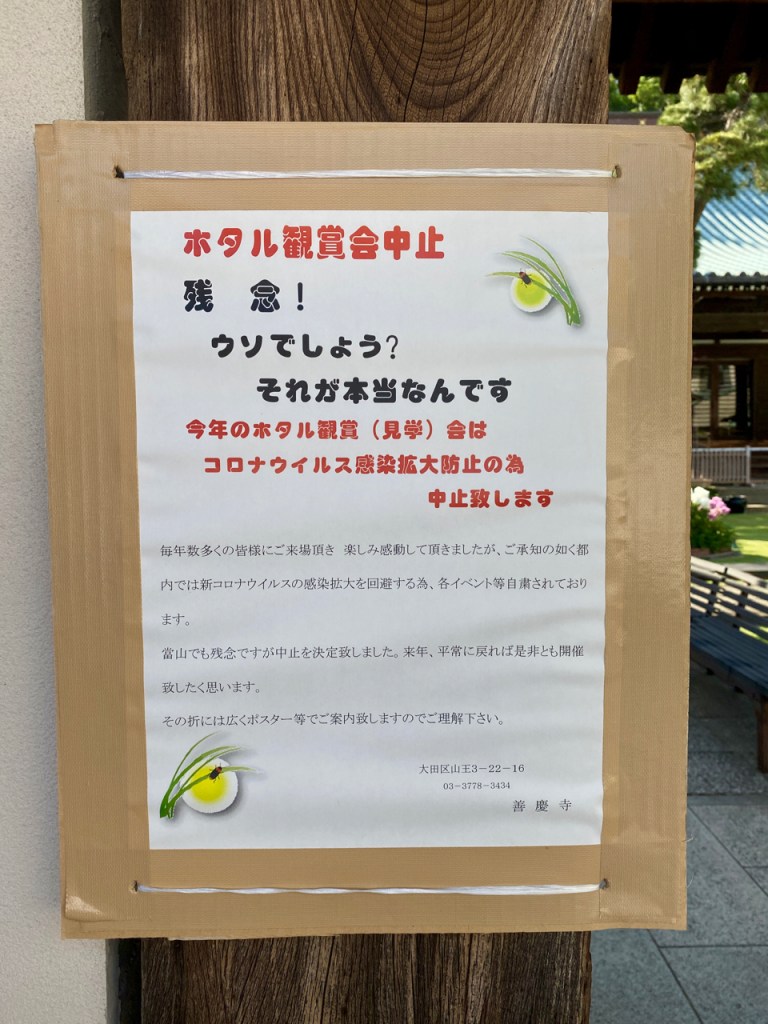 【大田区・善慶寺】今年のホタル観賞会は中止になりました。令和2年 hagiwaratakeshi2020年5月15日2020年5月15日イベント、善慶寺、大田区、大森、山王 投稿ナビゲーション 前次へ 残念なから今年は中止になりました。 善慶寺HP このブログは品川区、大田区を中心に活動する、耐震リノベーションを得意とする建築設計事務所Tiida Associatesが運営しています 。 いいね 読み込み中…