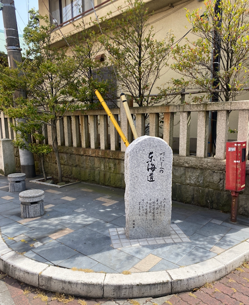 春日神社のうらにも、いにしへの東海道の碑があります。ちょっとベンチもあります。