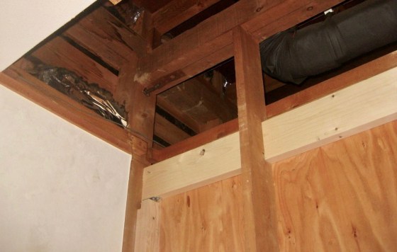 解体工事の後、木造軸組の劣化や設計で想定した状態と違いが無いか確認します。