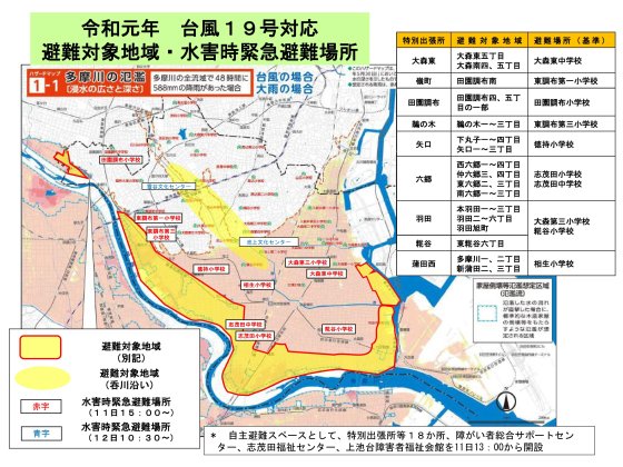 【大田区・避難所】台風19号接近い伴うの避難所情報です。大田区Twitterからの転記です。11時15分10月12日(土)令和元年