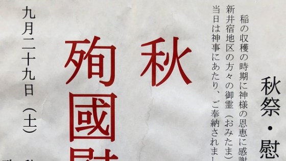 大森・春日神社 秋祭・殉国慰霊祭のお知らせ 平成30年