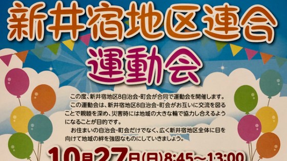 【大田区・新井宿地区連合会・運動会】地域の運動会のお知らせが町会の掲示板に出ていました。令和元年10月27日(日)
