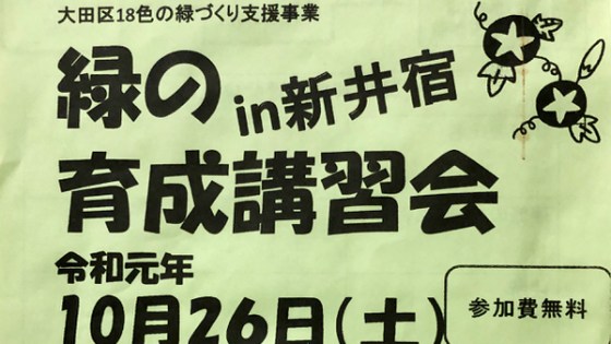 【大田区・緑の育生講習会】新井宿特別出張所で開催されます。令和元年10月26日(土)